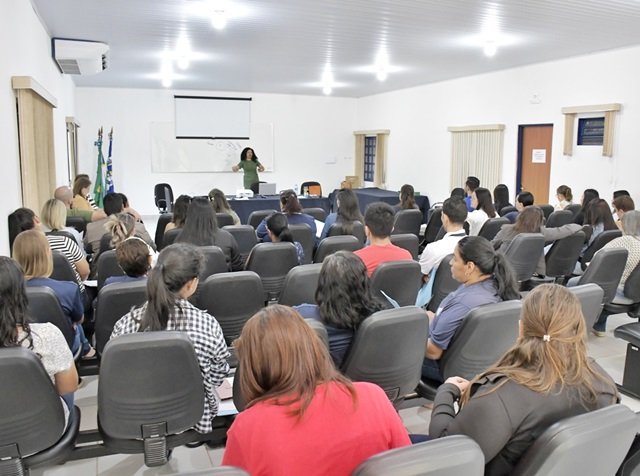 A capacitação aconteceu no auditório da SEMED e foi conduzida pelas palestrantes da cidade de Dourados - Talita Rolim da Silva (assistente social e especialista em Direitos Sociais e Competência Profissional) e Shirley Flores Zarpelon (advogada e especialista em atendimento à Pessoas com Deficiência).