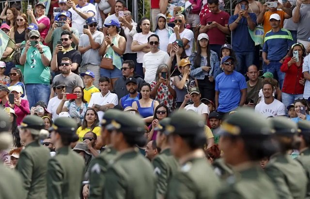 Milhares de pessoas se espalharam ao longo da Esplanada dos Ministérios, em Brasília, para prestigiar, esta manhã, o desfile de 7 de setembro, dia da Independência do Brasil. Sob sol forte e com a umidade do ar abaixo de 39% já às 10h, o público ocupou cada espaço sombreado de onde podia assistir ao tradicional desfile cívico-militar, incluindo a apresentação da Esquadrilha da Fumaça e a homenagem a cidadãos, servidores públicos e órgãos que atuam na reconstrução do Rio Grande do Sul, recentemente afetado pela maior tragédia climática da história do país.