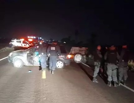 Equipes policiais na rodovia junto com o carro dirigido pelo suspeito (Foto: Divulgação)