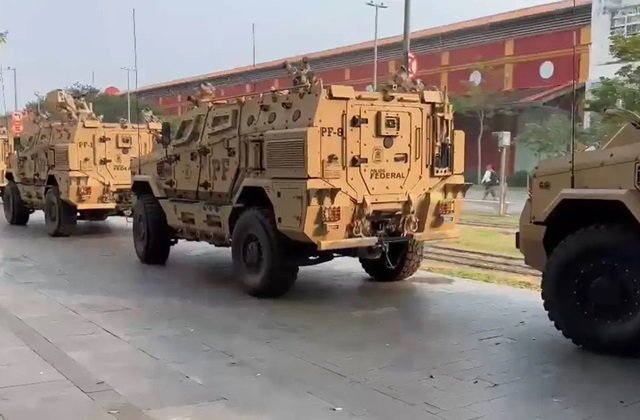 A operação batizada Buzz Bomb, que prendeu o traficante - e tentou cumprir um mandado de prisão preventiva contra o líder da facção, no Complexo da Penha, zona norte do Rio - contou com veículos blindados.