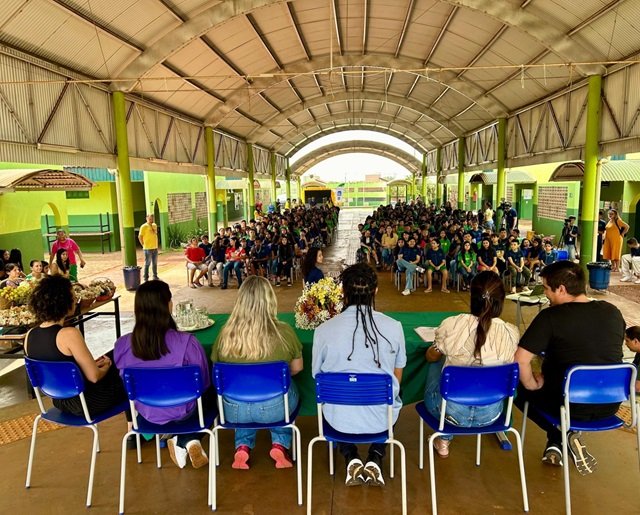 O primeiro ponto de parada foi a cidade de Dourados, a 229 quilômetros da Capital, onde mais de 630 pessoas - entre estudantes, professores e funcionários administrativos - das escolas estaduais Profª Rita Angelina Barbosa Silveira e Menodora Fialho de Figueiredo assistiram a palestras e capacitações focadas no fortalecimento da saúde mental e no desenvolvimento de propósito.