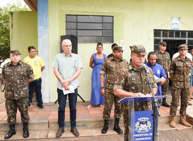A solenidade aconteceu no pátio da Estação Rodoviária de Aquidauana, e contou com a presença do Procurador Jurídico Heber Seba, na ocasião representando o Prefeito e presidente da Junta de Serviço Militar – Odilon Ribeiro, do Major Roberto Carlos Veras dos Santos Junior – representando o Comando da 9ª Região Militar, 2º Sargento Bruno de Oliveira Nascimento Silva Medeiros – representante do Núcleo de Preparação de Oficiais da Reserva.