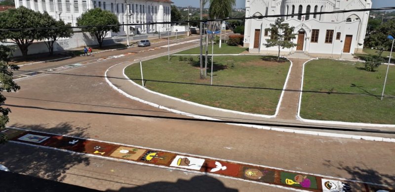 O tapete colorido feito com material reciclável coletado nas escolas da cidade é uma tradição da comunidade católica de Aquidauana. Pelo tapete vão caminhar em procissão autoridades eclesiásticas e fiéis.