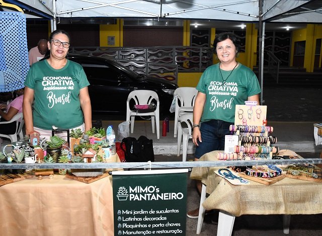 Enriquecendo a noite, as artesãs aquidauanenses expuseram produtos de decoração e utilidades domésticas, acessórios confeccionados a mão, com muita cor e riquezas de detalhes. Também dando um ar especial a feira, quem por lá passou pode adquirir plantas e rosas.