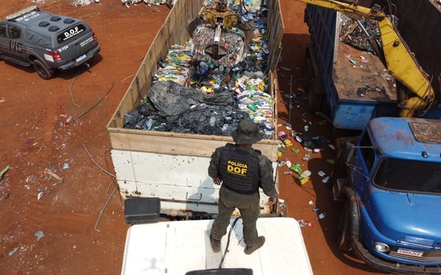 Os policiais realizaram uma busca no local e não localizaram o responsável pelo veículo que estava carregada com material plástico destinado à reciclagem. Durante a vistoria no semirreboque, os policiais foram surpreendidos com o forte odor de maconha que exalava da carga de recicláveis, onde visualizaram fardos da droga escondidos.