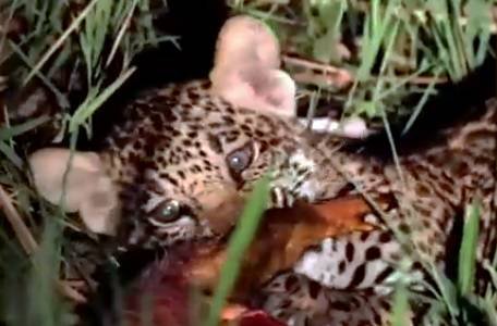 Filhote de onça-pintada conhecido como “Dakari”, com apenas 3 meses de idade, foi flagrada se alimentando de um tatu-peba no Pantanal.