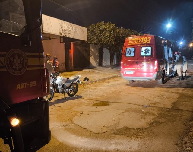 Anastácio: vitima de queda de moto é automedicada no local do acidente
