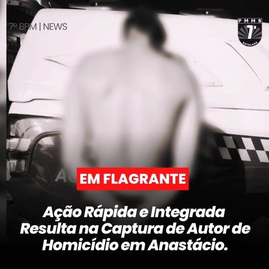 Em uma resposta ágil e coordenada, as equipes do 7º BPM de Aquidauana e Anastácio realizaram uma operação que culminou na captura do autor de um homicídio ocorrido na madrugada do dia 07/11, no bairro Cristo Rei, em Anastácio.