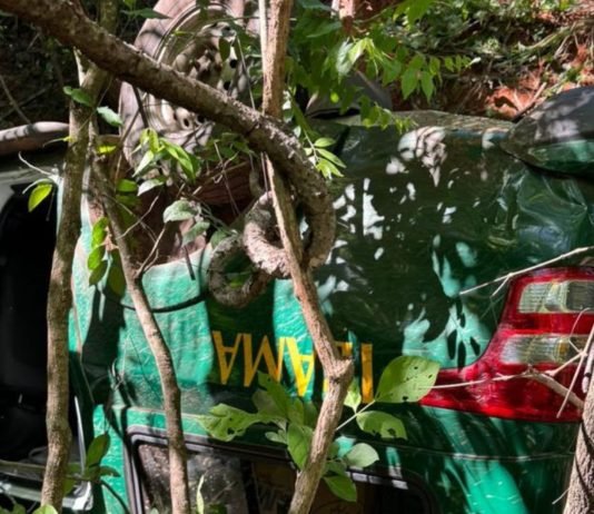 Segundo informações, um veículo VW/Gol que seguia na mesma via que a Mitsubishi L200/Triton que pertence ao IBAMA, foi realizar uma ultrapassagem e acabou batendo na camionete, onde o motorista perdeu o controle e caiu no barranco.