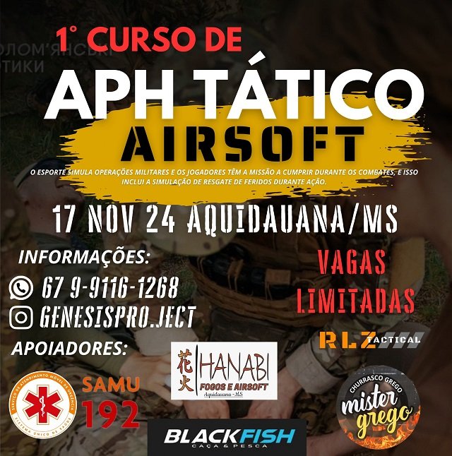 No próximo domingo, 17, às 8 horas terá início no recinto do Parque de Exposição de Aquidauana o 1º Curso de Atendimento Pré-Hospitalar Tático Airsoft (APH).