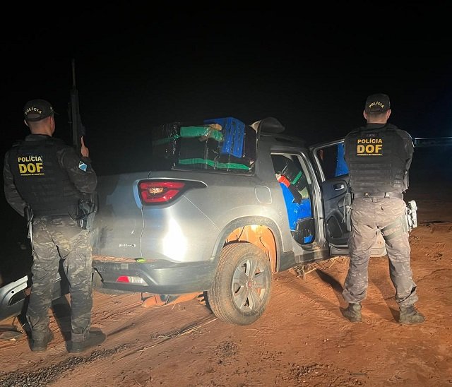 Policiais militares do DOF (Departamento de Operações de Fronteira) apreenderam na madrugada deste domingo (24), em Tacuru, um veículo Fiat Toro, roubado no Estado do Paraná, com 933 quilos de maconha e 300 gramas de haxixe. Na ação ninguém foi preso.