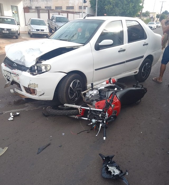 No local, Av Juscelino Kubistchek em frente a Prefeitura de Anastácio, a guarnição constatou o fato, uma colisão entre carro e moto e se deparou com uma vítima do sexo masculino, 23 anos, iniciais L.C.C, ao solo, já sem o capacete de segurança (que segundo informações saiu da cabeça durante a queda), sinais e sintomas de TCE (Traumatismo Crânio Encefálico), consciente e desorientado