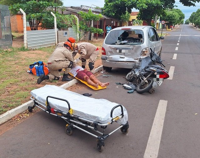 No local, rua Duque de Caxias em frente a vila dos sargentos, bairro alto, a guarnição constatou o fato, uma colisão entre uma moto biz e um veículo de passeio e se deparou com uma vítima do sexo masculino, 33 anos, condutor da moto.