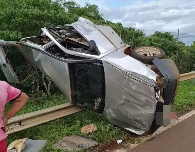 Quatro pessoas ficaram feridas após acidente envolvendo dois veículos terminar com a capotagem de um carro Volkswagen Gol, na MS-386, entre os municípios de Amambai e Ponta Porã. Com o impacto, o automóvel foi parar sobre o guard rail às margens da rodovia.