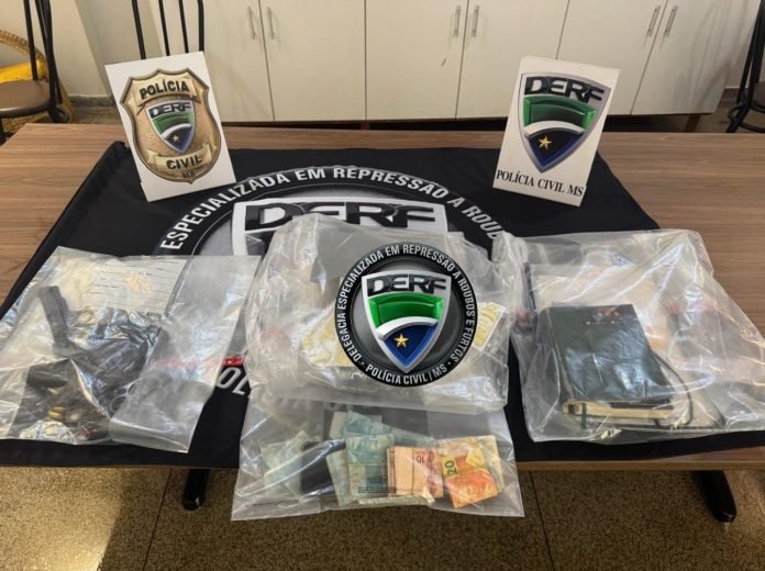 Nesta quarta-feira (11), policiais civis da DERF – Delegacia Especializada em Repressão a Roubos e Furtos, deram cumprimento a um mandado de prisão e três de buscas e apreensões em desfavor de um suspeito de extorsão decorrente da prática de agiotagem, o qual teria agredido e apontado arma de fogo para cabeça de uma mulher durante cobrança de juros considerados extorsivos.