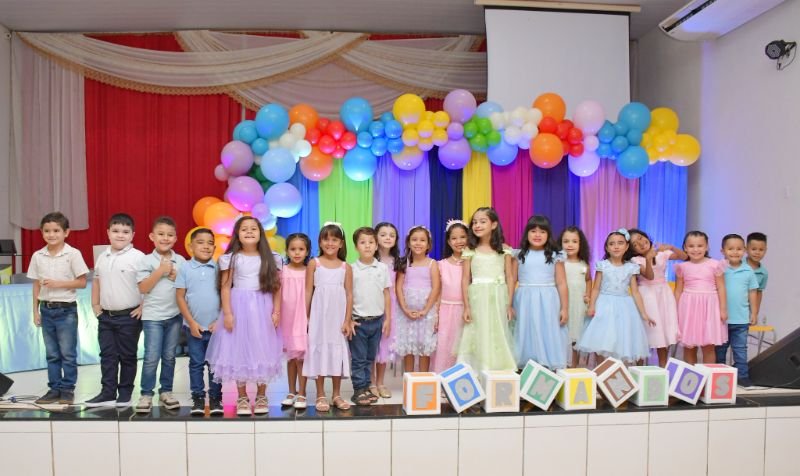 Envolto em uma decoração colorida, em cada detalhe um toque de carinho e alegria para receber os formandos do Pré II, do Centro Municipal de Educação Infantil Dona Mafalda, que adentraram, no tapete vermelho, a Igreja Presbiteriana Renovada, onde aconteceu a solenidade de formatura.