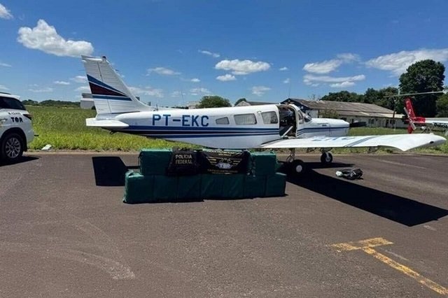 Em ação conjunta com Policiais Militares do 7º Batalhão de Polícia Militar de Aquidauana, o Grupo de Investigações Sensíveis da Polícia Federal (GISE/MS e GISE/SP), a Delegacia da Polícia Federal de Araçatuba, a Delegacia da Polícia Federal de Três Lagoas e o Tático Ostensivo Rodoviário da Polícia Militar de São Paulo (TOR-PM/SP) interceptaram uma aeronave e apreenderam cerca de 450 kg de substância entorpecente análoga à pasta base de cocaína, no aeródromo da cidade de Penápolis (SP), onde as equipes abordaram a aeronave PT-EKC e localizaram o carregamento de drogas.