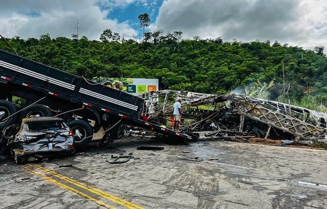 O incidente envolveu um ônibus, uma carreta e um veículo de passeio, na BR-116, segundo o Corpo de Bombeiros mineiro.