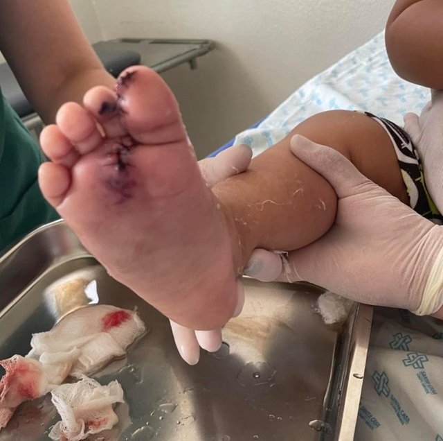 O indivíduo do sexo masculino que segurava a criança identificou que ele havia sido atingido nas costas, pelos disparos. Já a criança, foi atingida na perna.