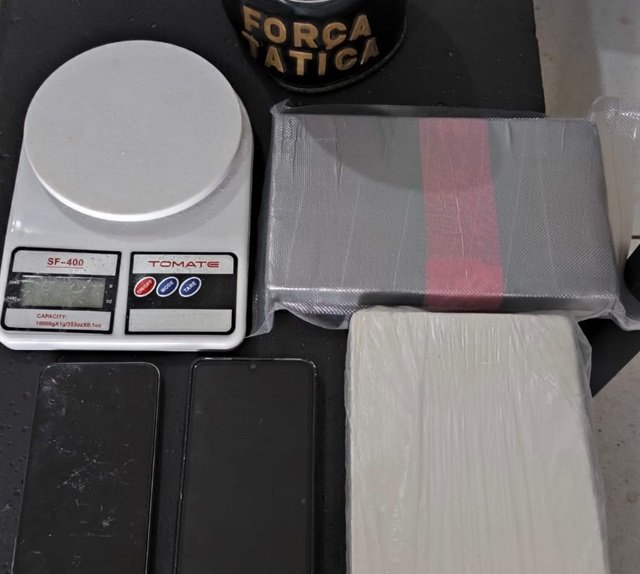 Durante a abordagem foi localizada junto ao abordado uma bolsa contendo 2 tabletes de cocaína e uma balança de precisão. Indagado sobre a substância, o abordado confirmou a traficância e o valor cobrado pelo quilo do entorpecente, informando ainda ter vendido 4 kg da mesma droga para um indivíduo de Jales-SP.