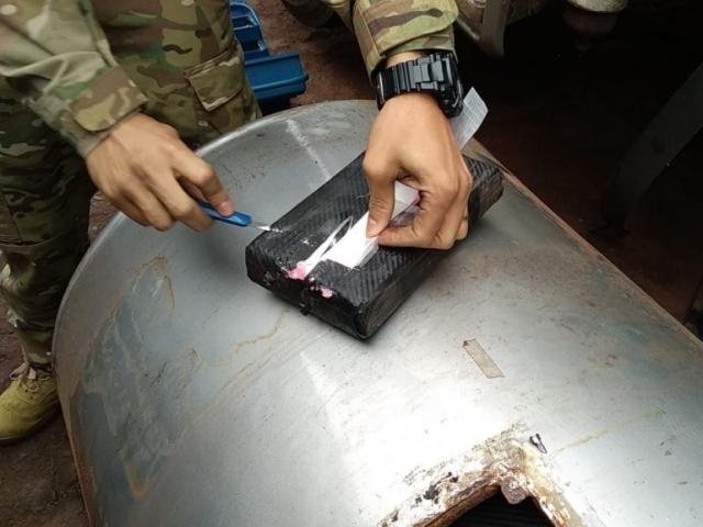 Cocaína encontrada em tanque de carreta com milho pesou 252 quilos