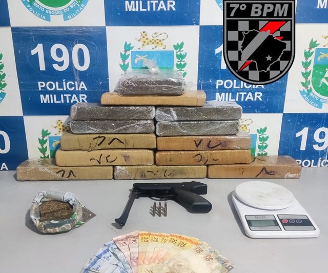 Além disso, em um cômodo nos fundos, foram apreendidos 9,562 kg de maconha divididos em tabletes.
