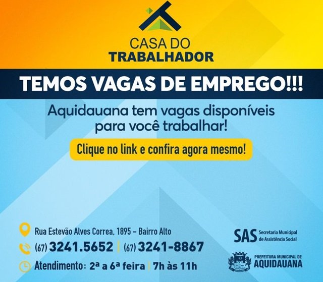 Aquidauana: confira vagas de emprego disponiveis na Casa do Trabalhador