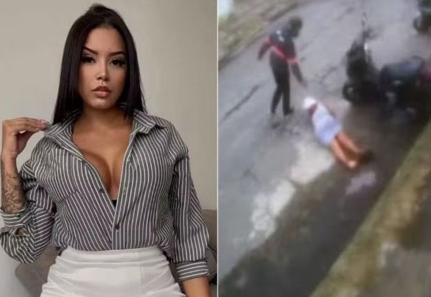 Nas imagens, Brenda aparece estacionando sua motocicleta em frente a um estabelecimento comercial. Poucos segundos depois, o autor usando um capacete se aproxima, efetua disparos de arma de fogo e foge, deixando a vítima gravemente ferida no chão.