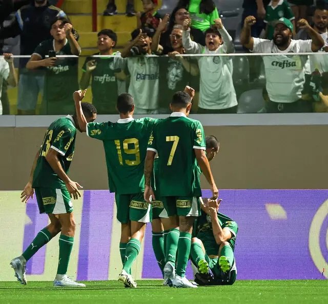 Jogadores do Palmeiras comemoral gol na Copinha (Foto: Fabio Menotti/SEP)