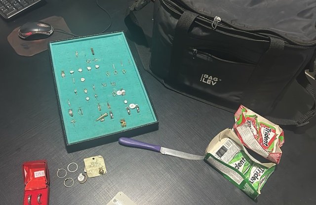 Em um quarto locado, onde estava residindo, foram encontradas joias e semijoias furtadas. Ele confessou a autoria dos fatos.