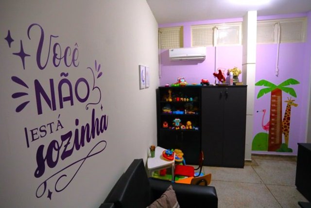 A sala é composta por dois ambientes, sendo um cartório para o escrivão que vai formalizar a denúncia e o outro (ambiente) tem brinquedos, sofá, banheiro com trocador, pois muitas vezes as vítimas estão com crianças e até bebês. O objetivo é oferecer toda tranquilidade e lugar seguro para seu filho, enquanto ela presta depoimento.