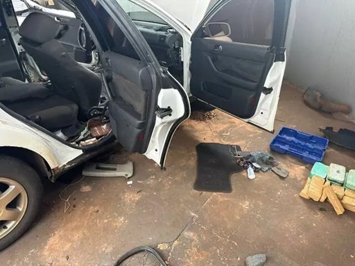 A droga estava em compartimento oculto de um Audi branco. O carro havia sido apreendido no dia 18 deste mês após o motorista fugir de policiais rodoviários federais na BR-163, em Nova Alvorada do Sul, mas os pacotes de pasta-base não ainda tinham sido localizados.