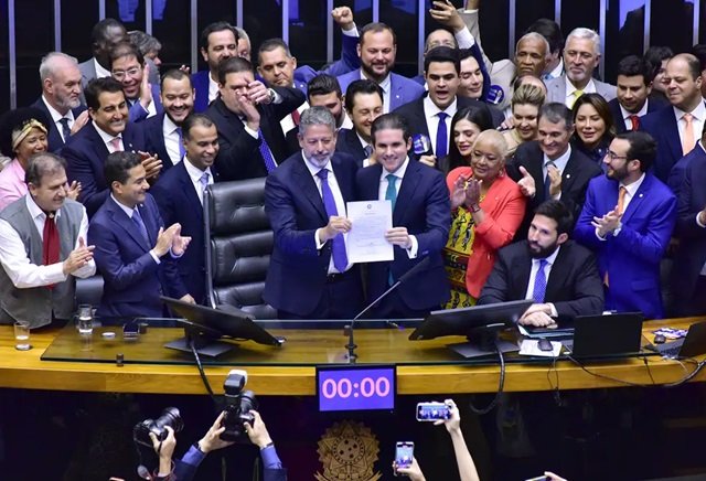 Após ter o resultado proclamado, Motta foi chamado à mesa para assinar o termo de posse e assumir a cadeira ocupada por Lira. O bloco que elegeu Motta reúne o PT, partido que dirige o governo federal, e o PL, principal legenda de oposição. Os demais integrantes são PCdoB, PV, União, PP, Republicanos, PSD, MDB, PDT, PSDB, Cidadania, PSB, Podemos, Avante, Solidariedade e PRD. Juntos, eles representam 494 dos 513 deputados federais.