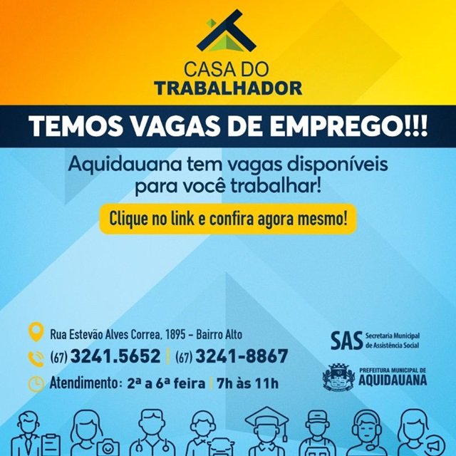 Vagas de emprego disponiveis na Casa do Trabalhador em Aquidauana