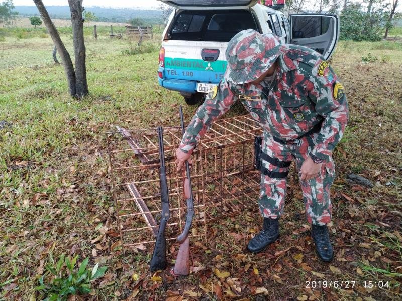 Polícia Militar Ambiental surpreende caçadores, apreende armas e armadilha de caça