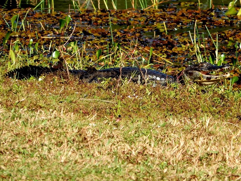 Filhote de Jacaré é flagrado tomando banho de sol na lagoa em Aquidauana