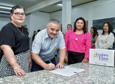 Na manhã desta sexta-feira, 21, o prefeito Mauro do Atlântico, acompanhado da primeira-dama Vera Lúcia Batista e da supervisora de Políticas Públicas para mulheres - Josilene Rodrigues Rosa, assinou o termo de adesão à campanha "Todos por Elas”, que é um compromisso coletivo pelo fim da violência contra a mulher.