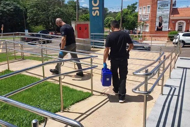 As duas agências bancárias Sicoob, do sistema cooperativo, localizadas na Avenida Afonso Pena e na Rua Caliandra, paralela à Avenida Mato Grosso, furtadas na madrugada desta segunda-feira (24), passaram por perícia no fim da manhã.