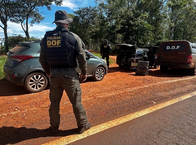Policiais militares do DOF (Departamento de Operações de Fronteira) com apoio de policiais civis da Denarc (Divisão Estadual de Narcóticos) do Paraná, apreenderam mais de 200 quilos de maconha, que seguiam em um GM Corsa. Na ação dois homens foram presos e um segundo veículo, Hyundai HB20, que fazia a função de batedor, foi apreendido.