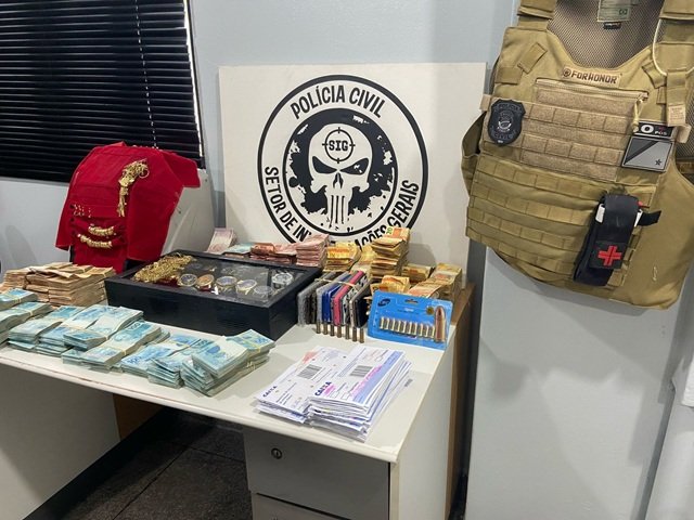 Os alvos são investigados pelos crimes de extorsão, supressão de documento público, furto mediante fraude, porte ilegal de arma de fogo, ameaça e agiotagem. Durante as buscas, foram apreendidos centenas de documentos pessoais, cartões de benefício social, munições, três veículos, joias e mais de R$ R$ 437,9 mil em espécie.