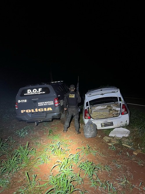 Os militares faziam patrulhamento pela MS-166, zona rural do município, quando deram ordem de parada ao condutor do veículo, que não obedeceu e tentou fugir. Após acompanhamento pela rodovia, o condutor arremessou o carro para uma plantação de milho e fugiu a pé.