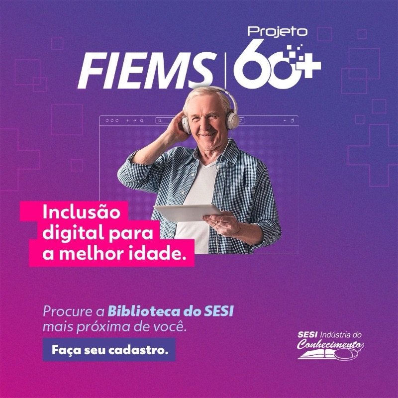 Para promover a inclusão da melhor idade, a Biblioteca SESI, em parceria com a Prefeitura de Aquidauana, por meio da Secretaria de Educação, oferece o PROJETO 60+.