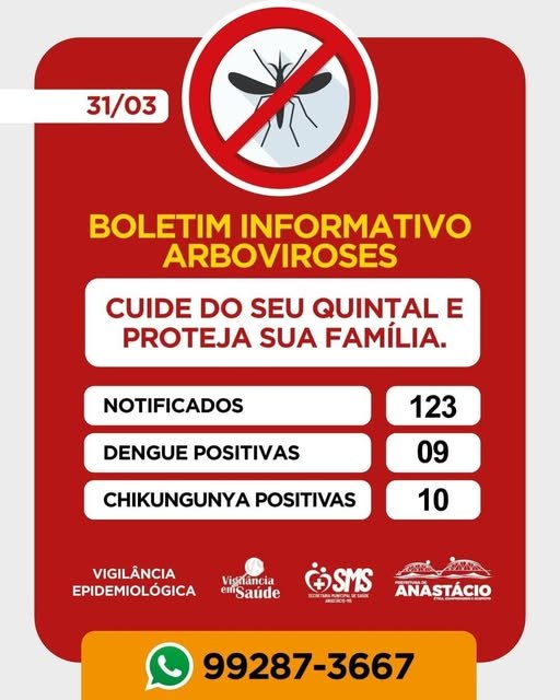 A Secretaria de Saúde, por meio da Vigilância em Saúde e Vigilância Epidemiológica, solicita o apoio da população no combate ao mosquito.