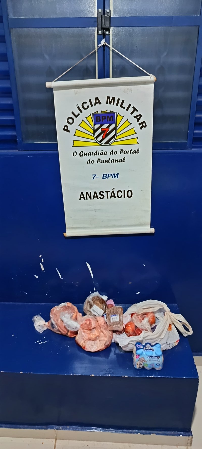 Durante rondas no bairro Cristo Rei, a equipe flagrou o suspeito com alimentos furtados de um caminhão em posto de combustível.