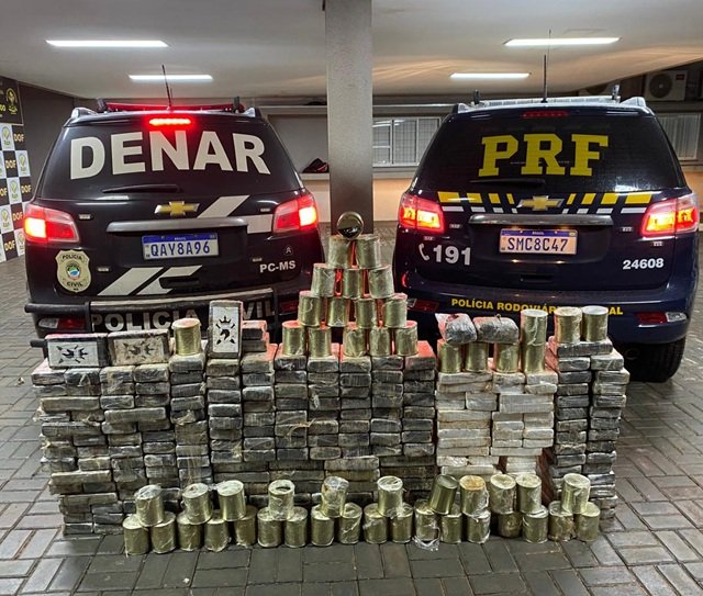 Nesta unidade, os policiais identificaram que o veículo estava carregado com 270 tabletes de cocaína, que somaram 295,1kg (duzentos e noventa e cinco quilos e cem gramas); 50 latas de maconha, totalizando 32,3kg (trinta e dois quilos e trezentos gramas); e dois pacotes de maconha pesando o total de 2,5kg.
