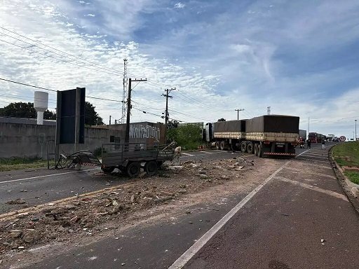Batida aconteceu por volta das 12h30; local está interditado para retirada de entulhos que ficou sobre a via.Um acidente envolvendo um caminhão e uma picape Fiat Strada com carretinha carregada de entulho causou congestionamento no início da tarde desta terça-feira (27), na saída de Campo Grande para Três Lagoas, nas proximidades da BR-163. Apesar do susto e dos danos materiais, não houve vítimas.