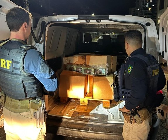 O veículo, que trafegava pela BR-101, foi abordado nas proximidades de uma empresa de logística, estacionado ao lado de um furgão, emplacado em Biguaçu (SC).