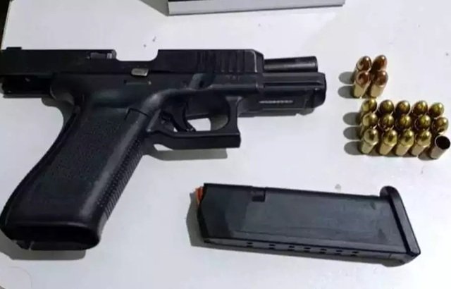 O caso, registrado na noite de sexta-feira (13). A pistola Glock 45 calibre 9 milímetros, estava municiada e a perícia apreendeu na residência um carregador, quatro munições da marca CBC intactas e 15 da marca S&B, sendo 14 intactas e uma deflagrada.