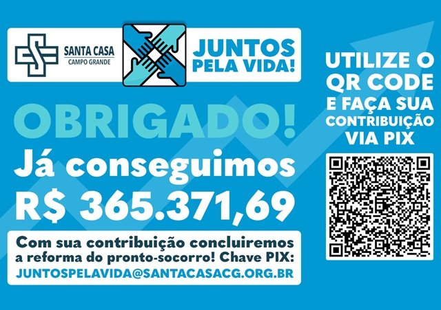 Lançada em 25 de abril, a campanha “Juntos Pela Vida – Sua Contribuição Salva!” já arrecadou R$ 365.371,69 para a reforma do pronto-socorro da instituição. A meta é atingir R$ 1,8 milhão em até 90 dias.