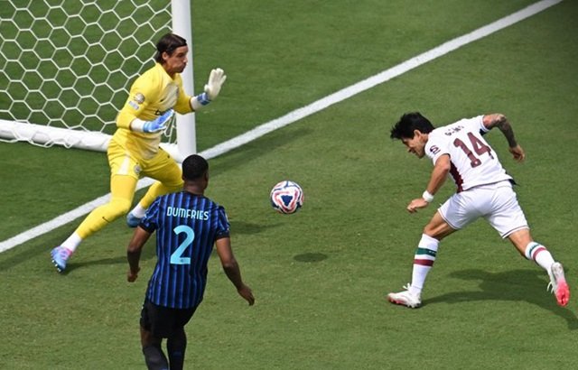 O volante Martinelli ganhou dividida com De Vrij e tocou na ponta direita para o colombiano Arias, que cruzou para a área. A bola desviou em Bastoni e acabou sobrando para Cano dentro da área. E o centroavante argentino desviou de primeira de cabeça para abrir o placar em seu jogo de número 200 pelo Fluminense.